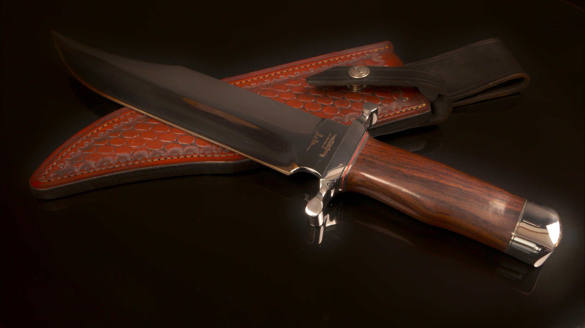 Known as the “Southern Bowie” style, this piece represents the pinnacle of Hibben’s craftsmanship, featuring the flawless mirror-polish finish that Gil pioneered in the custom knife industry.