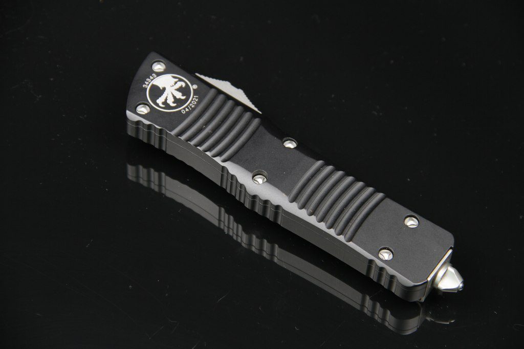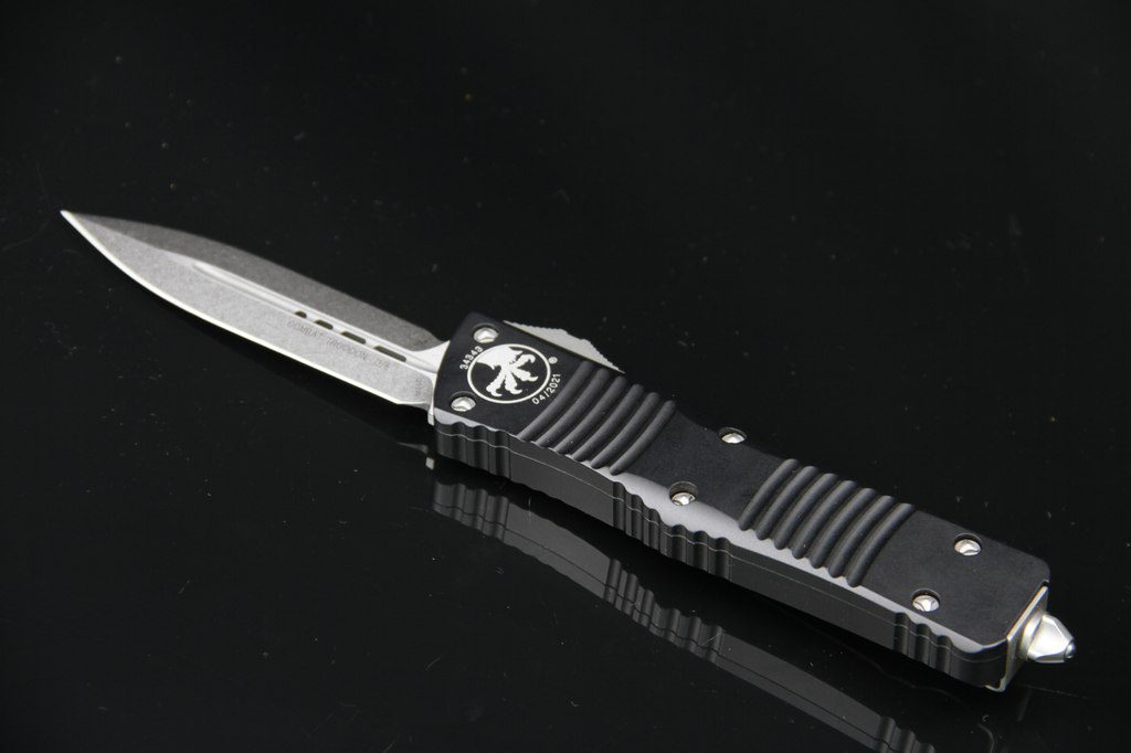 The Microtech Combat Troodon Gen 2 Double Edge (D/E) is the definitive choice for professionals seeking a full-sized, heavy-duty OTF automatic knife, blending a commanding form factor with Microtech’s renowned precision engineering. Built for tactical and duty applications, its substantial frame is secured by a rugged, aggressively textured 6061-T6 aluminum handle with iconic stepped jimping for maximum, non-slip grip. The symmetrically ground double-edged dagger blade, often crafted from premium steel like Bohler M390, deploys instantly with a powerful, double-action thumb slide, making it a reliable tool for superior penetration and utility, all capped with a hardened carbide glass breaker for mission-critical emergencies.