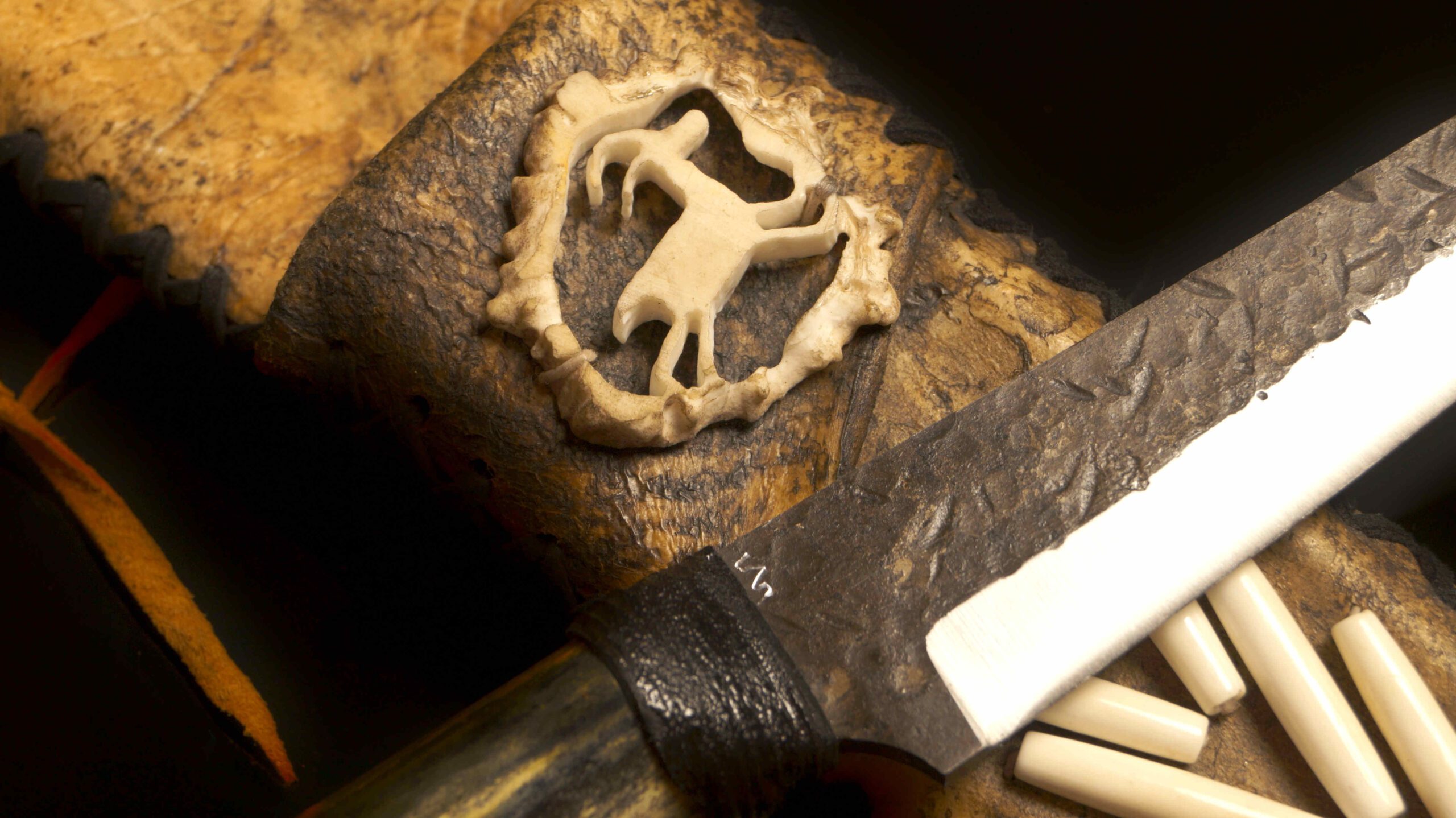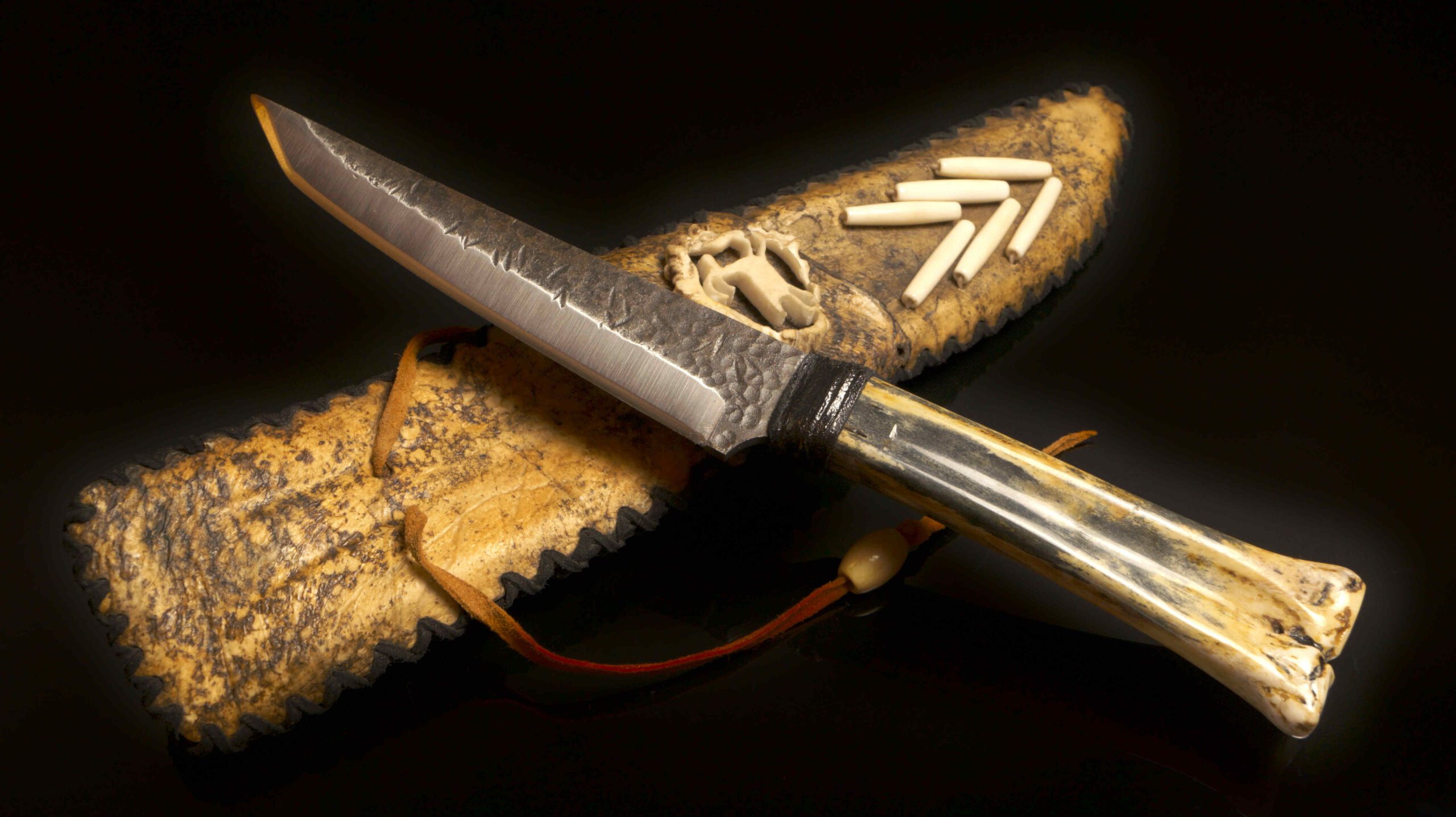 Sheath: Custom-fitted with decorative bone and leather accents