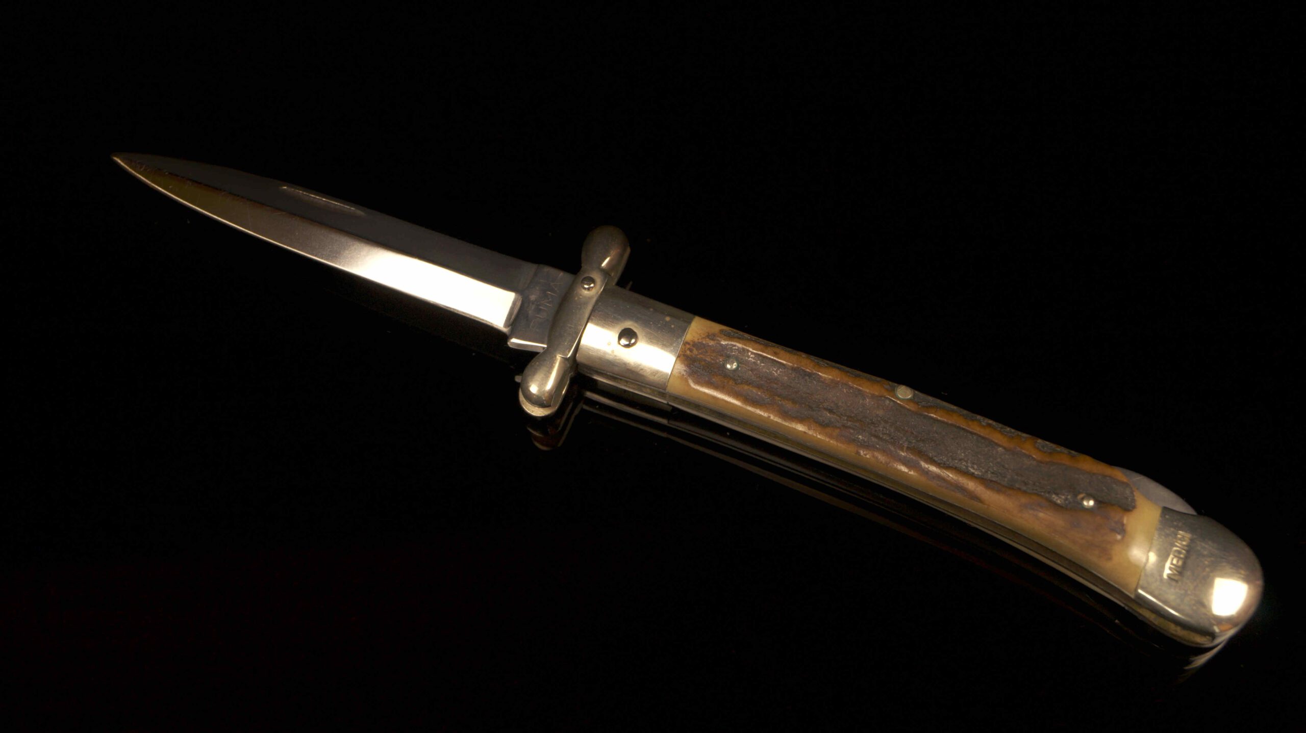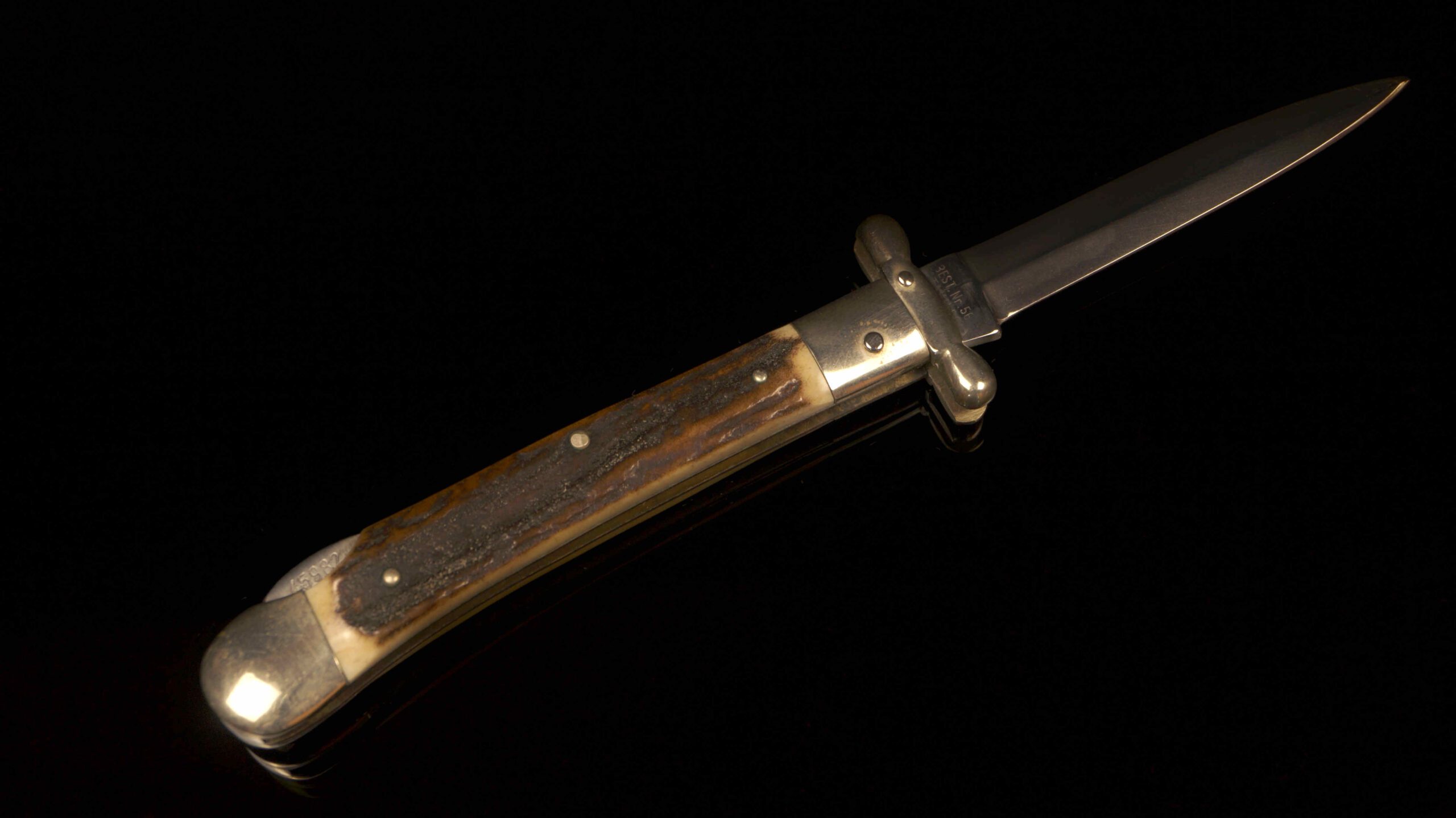 This is a rare, highly collectible 1982 Medici model knife, crafted by Puma Germany, as indicated by the stamp on the blade. The bolster bears the coveted “MEDICI” mark, and the knife features a well-figured, dark yellowish Sambar stag antler handle. The polished blade is sharp, lightly used, and in excellent condition for its 41 years, with a tight opening and a crisp closing snap. Minor age marks are visible (see images), but they do not detract from its outstanding condition.