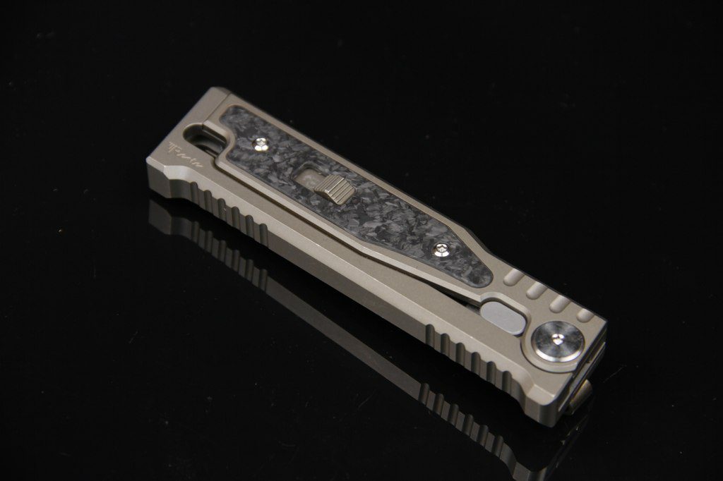 The Reate EXO Exoskeleton Gravity Knife features a double-edge Bohler Elmax blade with a stealthy black PVD finish, housed in a titanium exoskeleton frame. This manual gravity knife deploys smoothly with a controlled tip action, offering a unique blend of precision, durability, and bold design — perfect for collectors and serious EDC enthusiasts.