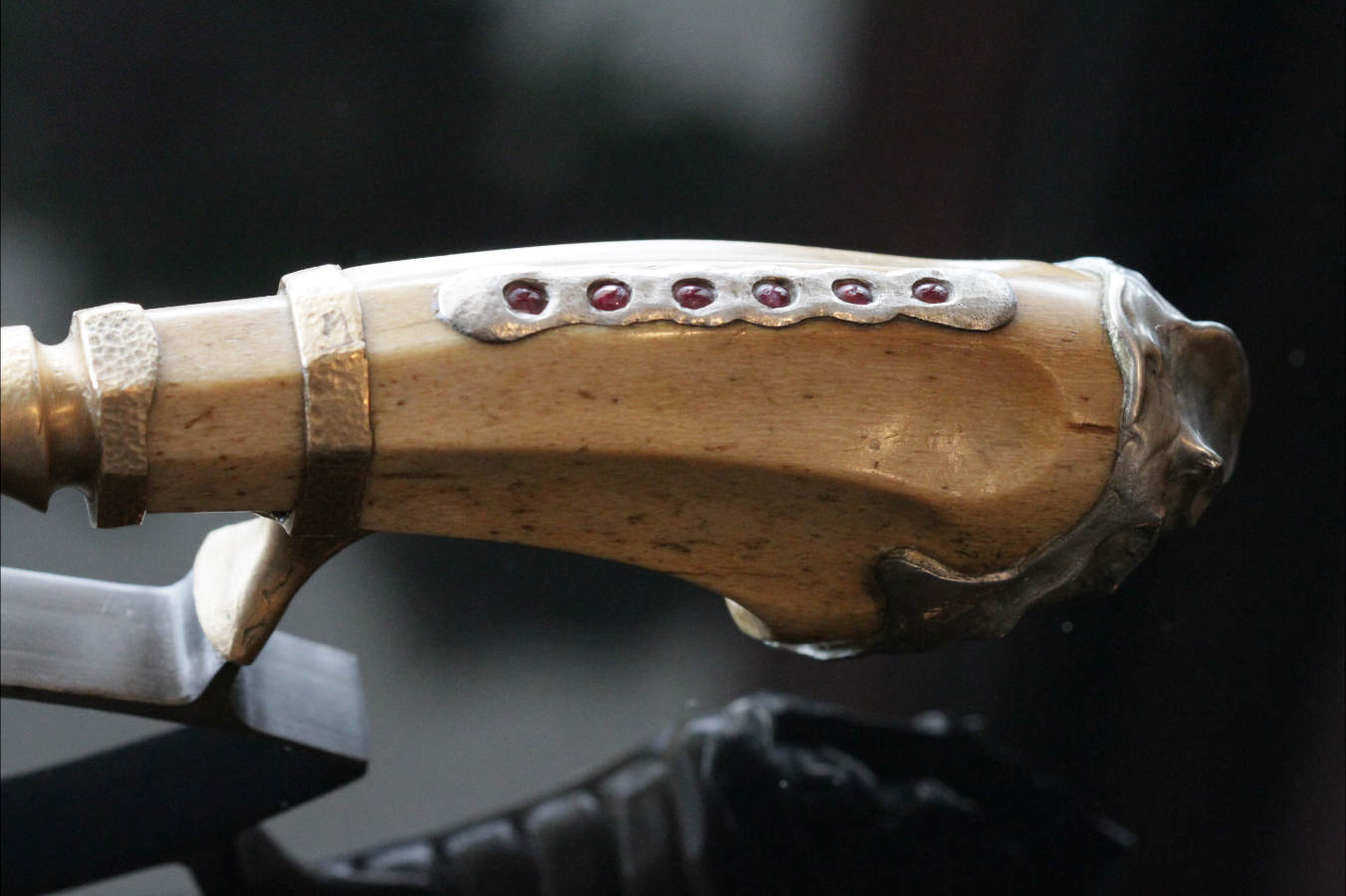 Damascus, Ruby cabochons, Bronze, Sterling Silver, Stellar Sea Cow.