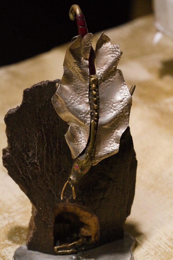 Push blade down until the right rear foot is firmly seated on the edge of the Mammoth bone. This insures the blade and tail are held firmly in place….enough so you can pick up the full piece by the tail.